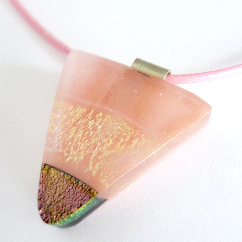 Pink dichroic glass triangular pendant